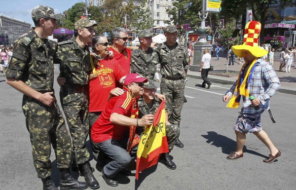 Λίγη ώρα απομένει για την έναρξη του μεγάλου τελικού του Euro 2012, μεταξύ Ιταλίας και Ισπανίας. Από το πρωί, χιλιάδες φίλαθλοι έχουν κατακλύσει τους δρόμους της ουκρανικής πρωτεύουσας, δίνοντας στο Κίεβο ιταλο-ισπανικό χρώμα.