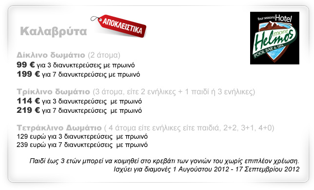 Το ξενοδοχείο Mont Helmos στο γραφικό χωριό της Κλειτορίας, πολύ κοντά στα Καλάβρυτα, αποτελεί μια απρόσμενα ευχάριστη έκπληξη, που θα σας κερδίσει με τη ζεστή και φιλική του ατμόσφαιρα και θα αποτελέσει το επίκεντρο για τις πολλαπλές εξορμήσεις σας στην ευρύτερη περιοχή.