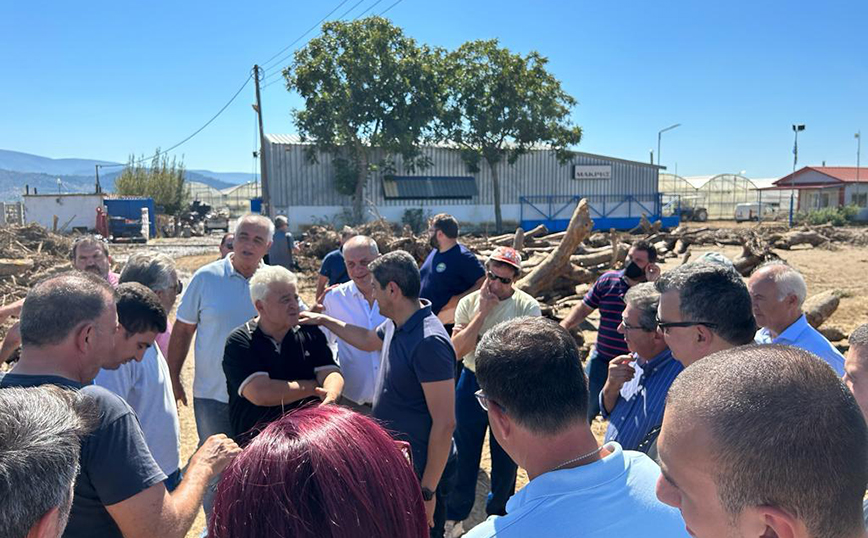 Τον συνόδευαν, ο υφυπουργός Αγροτικής Ανάπτυξης και Τροφίμων Διονύσης Σταμενίτης, ο υφυπουργός Κλιματικής Κρίσης και Πολιτικής Προστασίας Χρήστος Τριαντόπουλος, ο βουλευτής Λάρισας Χρήστος Καπετάνος, ο πρόεδρος του ΕΛΓΑ Ανδρέας Λυκουρέντζος και η αντιπεριφερειάρχης Μαγνησίας Δωροθέα Κολυνδρίνη.