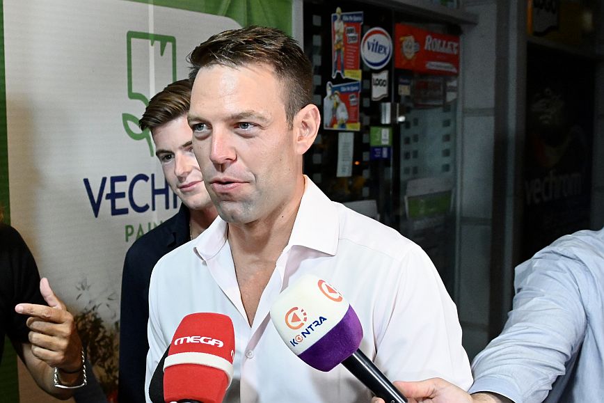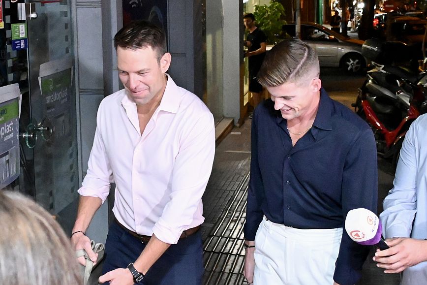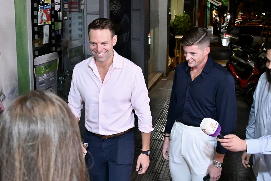 Μετά τις 20:30 έφτασε στο πολιτικό του γραφείο, έτσι ώστε να δει εκεί τα αποτελέσματα και τη συνέχεια της εκλογικής βραδιάς. Ο κ. Κασσελάκης ήταν ευδιάθετος και χαμογελαστός, ενώ συνοδευόταν από τον Τάιλερ και πρόσωπα του στενού του κύκλου.