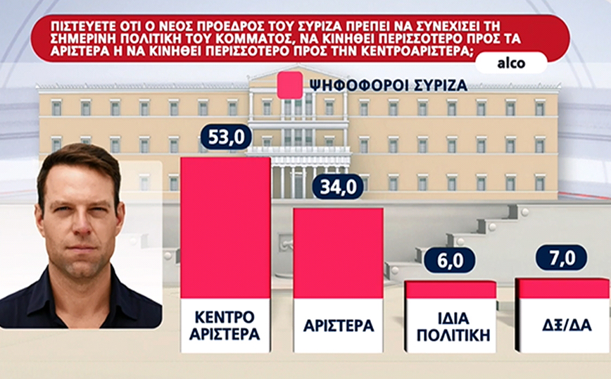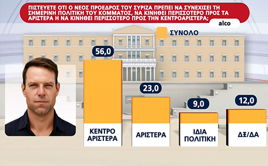 Στην ερώτηση για το πού πρέπει να κινηθεί το κόμμα με τον νέο αρχηγό το 56% απάντησε κεντροαριστερά, ενώ το 23% αριστερά.