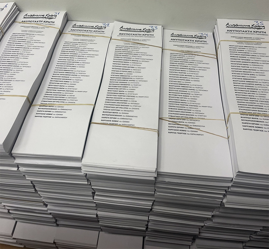 Όπως μεταδίδει το τοπικό cretalive.gr, στο Ηράκλειο, όπου παρέλαβαν τα ψηφοδέλτια των συνδυασμών, τους φακέλους και τα βιβλία πράξεων των εφορευτικών επιτροπών, βρέθηκαν μπροστά σε θηριώδη ψηφοδέλτια με αποκορύφωμα ένα ψηφοδέλτιο που αγγίζει τα 98 εκατοστά σε μήκος!