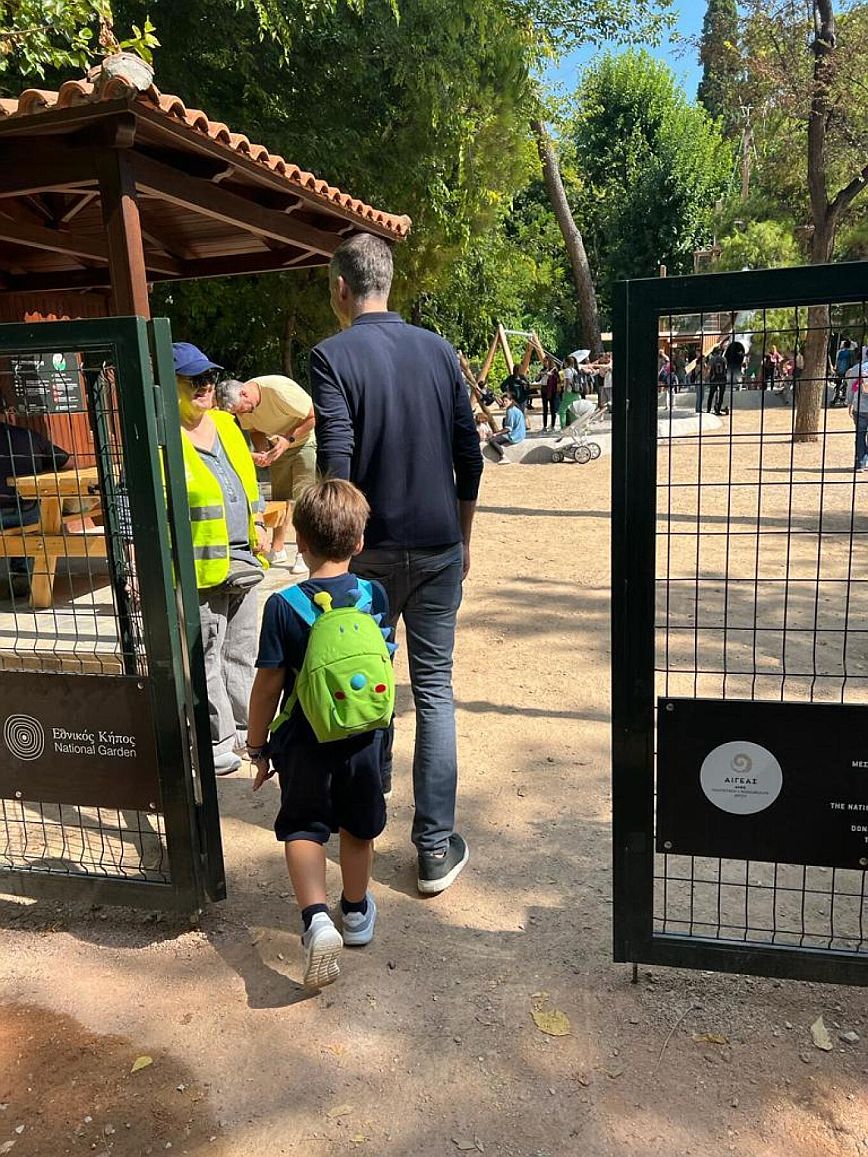 Μάλιστα, με τον μικρό γιό του Δήμο, πήγαν βόλτα στον Εθνικό Κήπο και έπαιξε μαζί του στην παιδική χαρά, που πρόσφατα ανακαινίστηκε και αναβαθμίστηκε, στο πλαίσιο της γενικότερης αναβάθμισης που πραγματοποιήθηκε στο μεγάλο πάρκο του κέντρου της πόλης, ενώ αργότερα συνέχισαν τη βόλτα τους και πέρασαν και από την πλατεία Συντάγματος.
