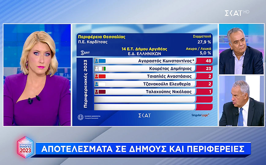 Συγκεκριμένα σε τμήμα του Δήμου Αργιθέας, ο Κωνσταντίνος Αγοραστός παίρνει 48 ψήφους, έναντι 23 του Δημήτρη Κουρέτα, 2 του Αναστασίου Τσιαπλέ, 2 της Ελευθερίας Τζανακούλη και 1 του Νικόλα Ταλαχούπη.