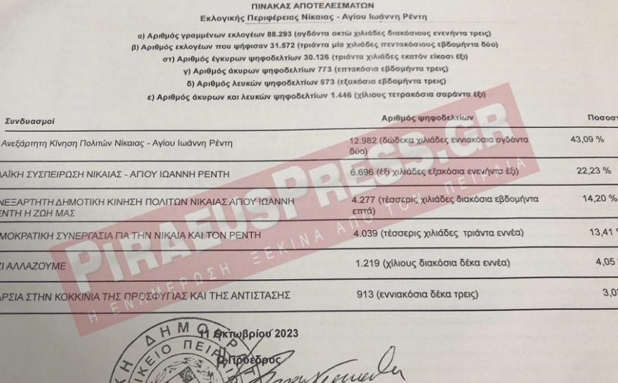 «Ο κυρίαρχος λαός της Νίκαιας και του Ρέντη αποφάσισε. Η Ανεξάρτητη Κίνηση Πολιτών Νίκαιας – Αγ. Ιωάννη Ρέντη είναι και με τη βούλα η νέα Δημοτική Αρχή της πόλης.