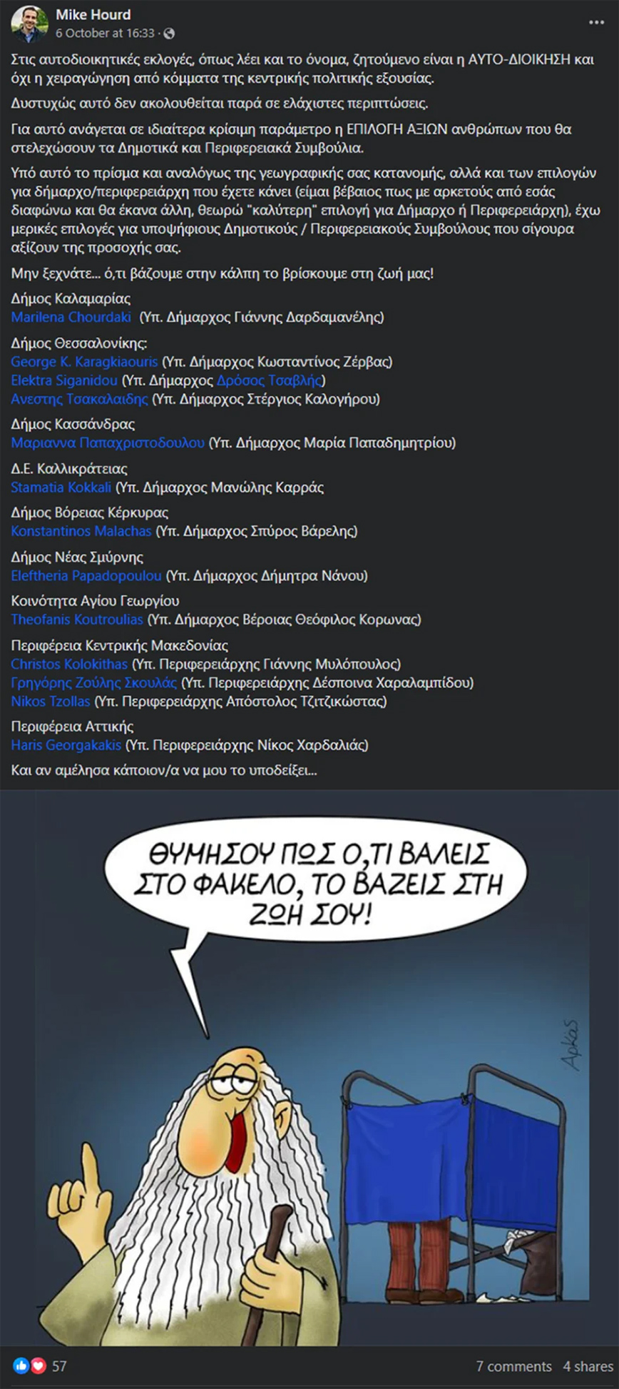 Ο ανεξάρτητος βουλευτής με συνεντεύξεις στο «Βεργίνα Tv» και το «Εγνατία Tv» παραδέχεται πως αμέσως μετά την ανάρτησή του, με την οποία εξέφρασε δημόσια την υποστήριξη σε υποψηφίους περιφερειακούς και δημοτικούς συμβούλους των «γαλάζιων» συνδυασμών Ζέρβα, Τζιτζικώστα και Χαρδαλιά, δέχθηκε γραπτό μήνυμα από την πρόεδρο του κόμματος που του έλεγε ότι «προσβάλεις βάναυσα την Πλεύση Ελευθερίας».