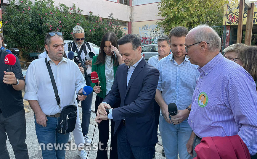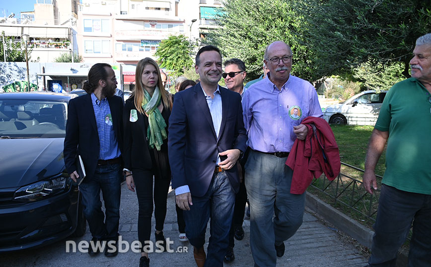 Ο υποψήφιος δήμαρχος Αθηναίων και επικεφαλής του συνδυασμού «Αθήνα Τώρα» προσήλθε στις 10:05 στο σχολικό συγκρότημα Γκράβας.