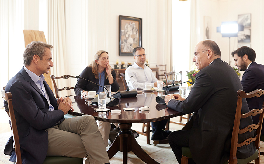 Ο Πρωθυπουργός Κυριάκος Μητσοτάκης συναντήθηκε σήμερα, στο Μέγαρο Μαξίμου, με τον Πρόεδρο του Ινστιτούτου «Jacques Delors» και πρώην Πρωθυπουργό της Ιταλίας, Enrico Letta.