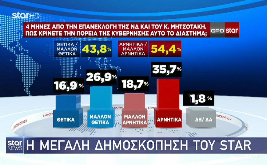 Αρκετά ενδιαφέροντα ευρήματα είχε η πρώτη δημοσκόπηση του Star και της GPO, η πρώτη μετά τις αυτοδιοικητικές εκλογές.