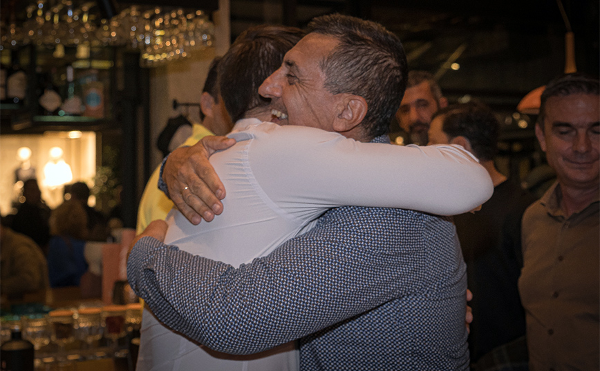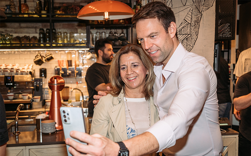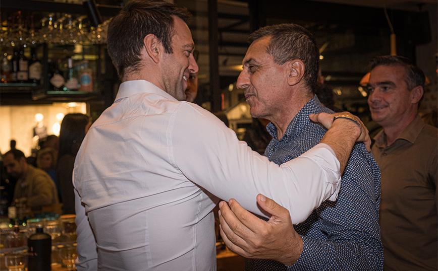 Σε κεντρική καφετέρια, ο νέος πρόεδρος του κόμματος ήπιε το ποτό του και φωτογραφήθηκε με τους παρευρισκόμενους. Μεταξύ αυτών ήταν και ο νέος περιφερειάρχης Θεσσαλίας, ο Δημήτρης Κουρέτας, με τον οποίο είχαν μια θερμή αγκαλιά και κατ΄ιδίαν συζήτηση.