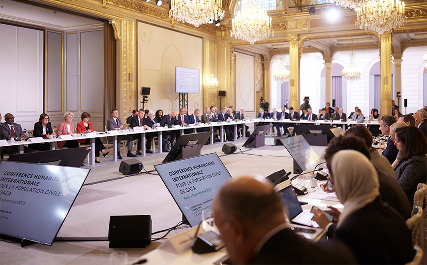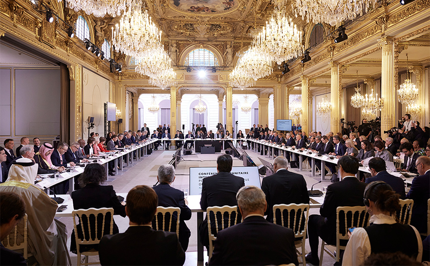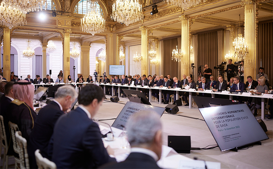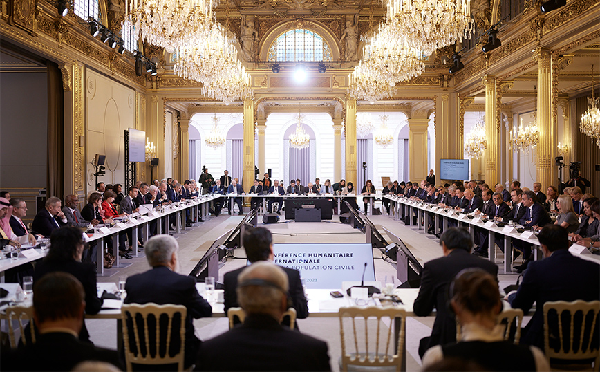 «Επιτρέψτε μου καταρχάς να ευχαριστήσω τον Πρόεδρο Macron για τη διοργάνωση της σημερινής διάσκεψης, η οποία δυστυχώς πραγματοποιείται με φόντο την κλιμακούμενη ανθρωπιστική κρίση στην περιοχή. Εκφράζουμε τη βαθιά θλίψη μας για την απώλεια αθώων πολιτών. Οι πρώτες μας σκέψεις είναι με τις οικογένειες των θυμάτων καθώς και με τις οικογένειες των ομήρων. Και, βέβαια, ανησυχούμε βαθύτατα για την κλιμάκωση στο πεδίο τις τελευταίες ημέρες.
