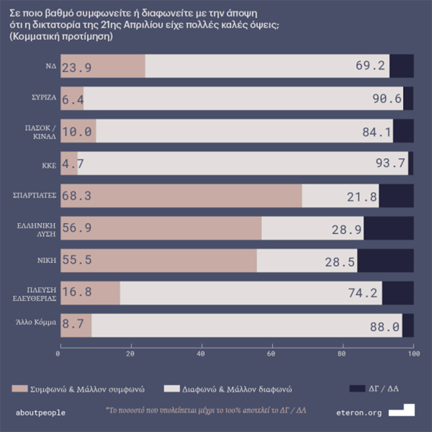 Επίσης, στο ερώτημα αν η δικτατορία της 21ης Απριλίου είχε και θετικές όψεις,