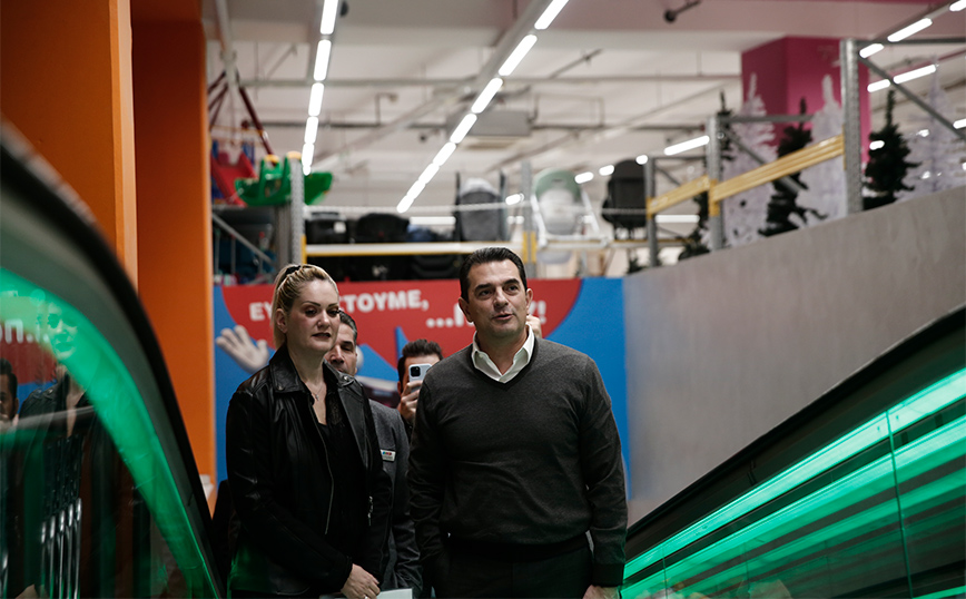 «Σήμερα εδώ, σε ένα μεγάλο κατάστημα το οποίο πουλάει εκτός από παιχνίδια, στολίδια, δέντρα χριστουγεννιάτικα και λαμπάκια, βλέπουμε ότι οι τιμές είναι μειωμένες μεσοσταθμικά κατά 20%. Έχουμε μειώσεις που φτάνουν και το 30%, όπως είδαμε εδώ στα λαμπάκια που από 29,99 έχει μειωθεί η τιμή τους στα 19,99 ευρώ, δηλαδή έχουμε 10 ευρώ μείωση για τα 500 λαμπάκια» δήλωσε.