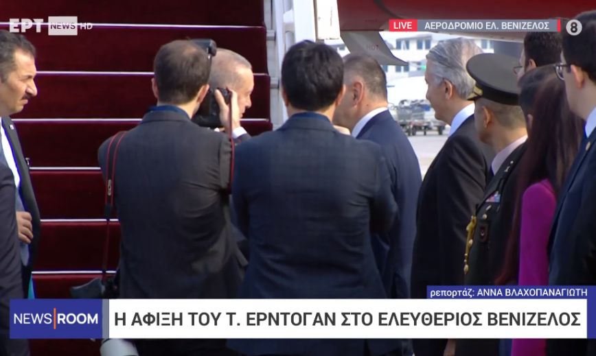 Στην Αθήνα βρίσκεται ο τούρκος πρόεδρος, Ρετζέπ ταγίπ Ερντογάν, το αεροσκάφος του οποίου προσγειώθηκε στο αεροδρόμιο «Ελευθέριος Βενιζέλος» λίγο πριν τις 10:30 το πρωί. Τον Ερντογάν υποδέχθηκε ο υπουργός Εξωτερικών, Γιώργος Γεραπετρίτης. Ο πρόεδρος της Τουρκίας εφτασε περίπου μισή ώρα νωρίτερα από την προγραμματισμένη, κάτι που πιθανόν συνδέεται με τα μέτρα ασφαλείας.