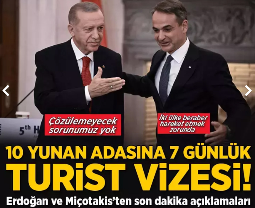 Milliyet: «7ήμερη βίζα για 10 ελληνικά νησιά! Ερντογάν: Δεν υπάρχει πρόβλημα, που δεν μπορούμε να λύσουμε μεταξύ μας»
