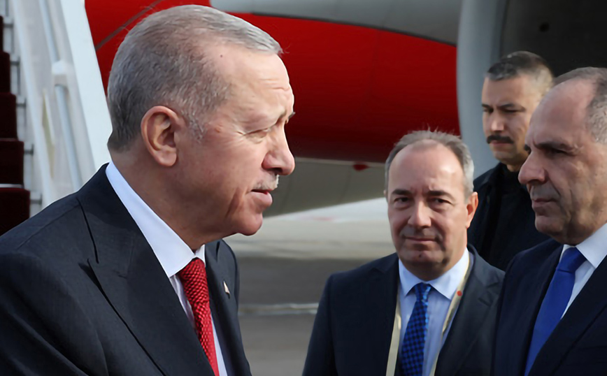 Όπως φαίνεται στις εικόνες που καταγράφηκαν, ο δίμετρος σωματοφύλακας δεν άφησε ούτε στιγμή από τα μάτια του τον τούρκο πρόεδρο από την ώρα που αποβιβάστηκε στο «Ελευθέριος Βενιζέλος».