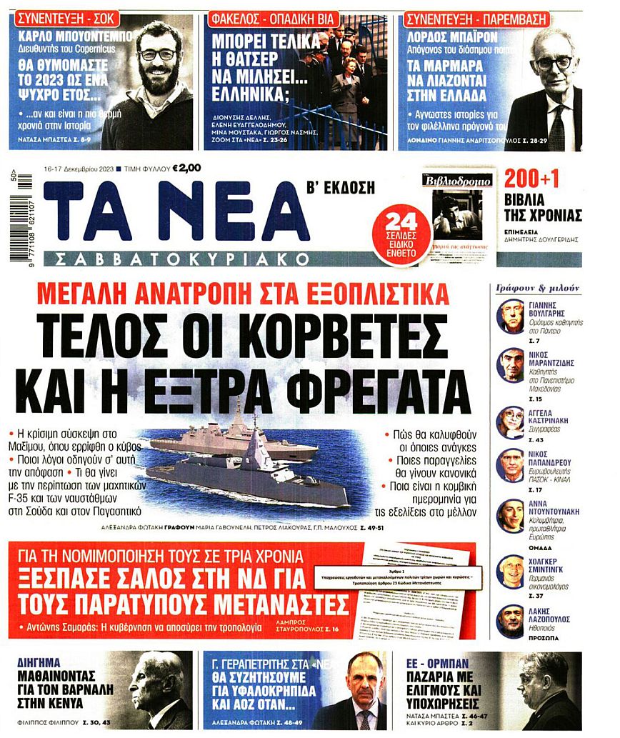 Συγκεκριμένα αναφέρεται στο ρεπορτάζ της εφημερίδας πως «παγώνει μέχρινεωτέρας προγράμματα που είχαν εξαγγελθεί, όπως οι κορβέτες αλλά και το ενδεχόμενο για την τέταρτη φρεγάτα FDi Belharra με την option να έχει ήδη λήξει».