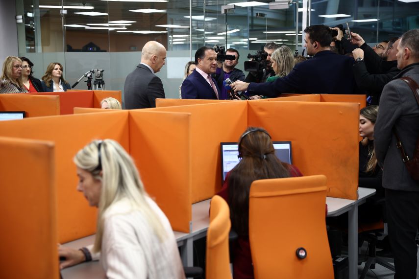Αιφνιδιαστική επίσκεψη πραγματοποίησε το πρωί της Παρασκευής ο υπουργός Εργασίας και Κοινωνικής Ασφάλισης Άδωνις Γεωργιάδης στο τηλεφωνικό κέντρο του 1555, με αφορμή την έναρξη της πιλοτικής διαδικασίας ενημέρωσης των ασφαλισμένων του e-ΕΦΚΑ σχετικά με το συνταξιοδοτικό τους δικαίωμα και την υποβολή αίτησης συνταξιοδότησης.