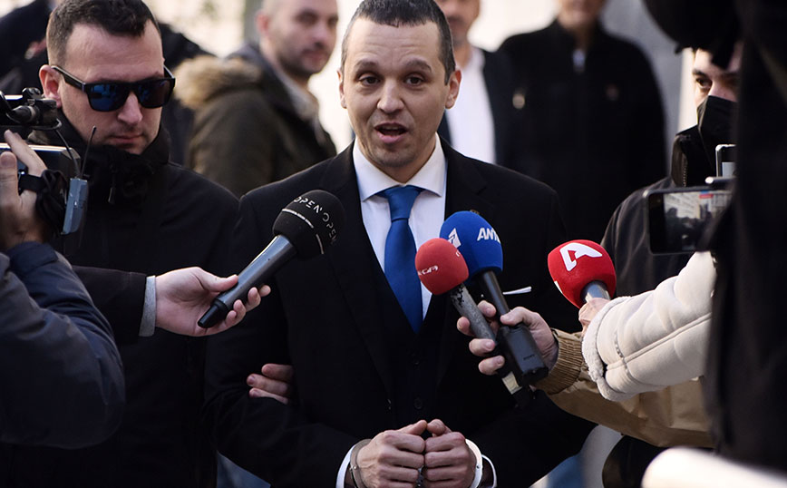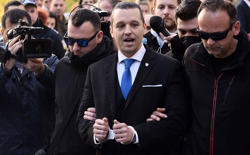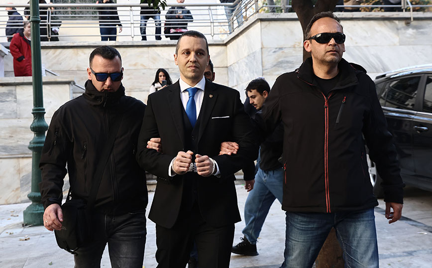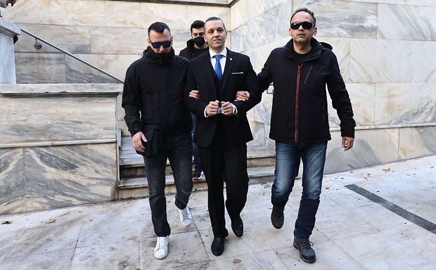 Ο Ηλίας Κασιδιάρης, με χειροπέδες στα χέρια, μεταφέρθηκε σήμερα στο δημαρχιακό μέγαρο για την ορκωμοσία του ως δημοτικός σύμβουλος της Αθήνας.