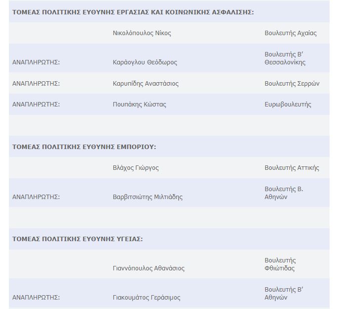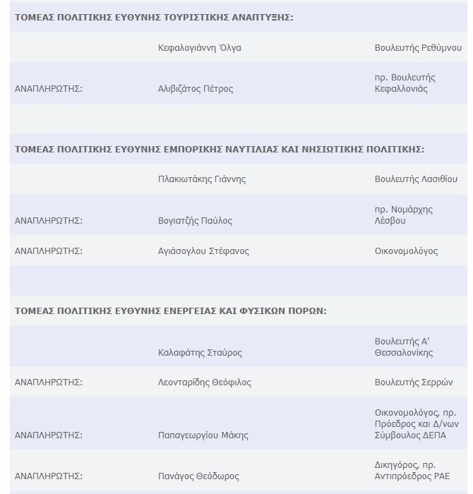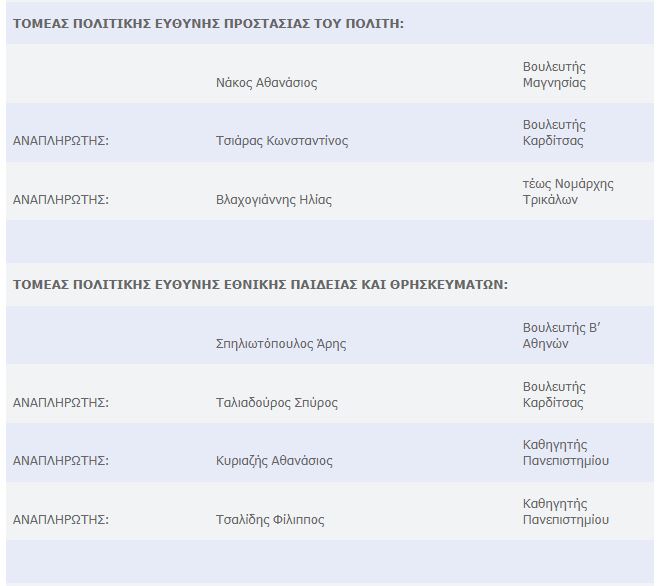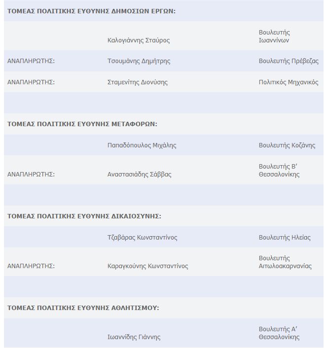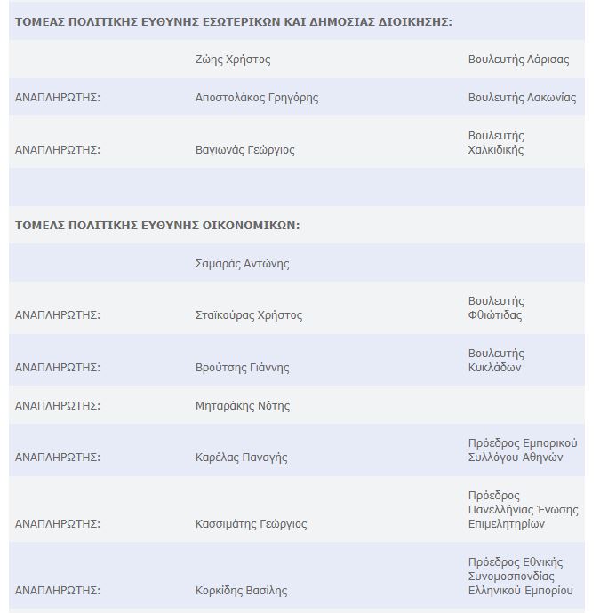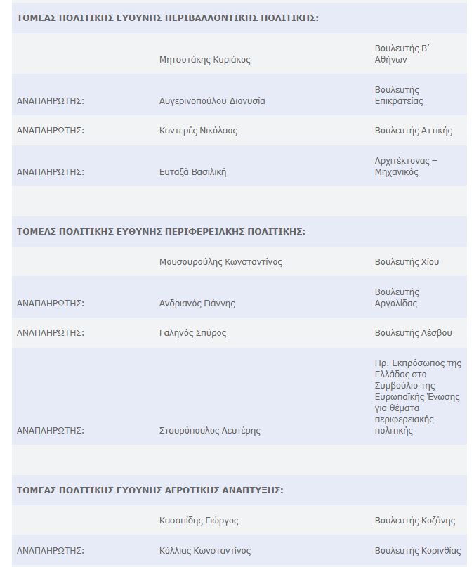 Οι αλλαγές στους τομεάρχες στη Νέα Δημοκρατία
