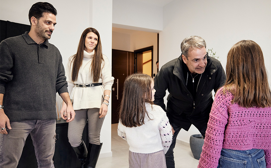 Με ένα νεαρό ζευγάρι με δύο παιδιά, που απέκτησαν το δικό τους σπίτι στο Γαλάτσι, ωφελούμενοι από το πρόγραμμα «Σπίτι μου», συναντήθηκε ο πρωθυπουργός Κυριάκος Μητσοτάκης.