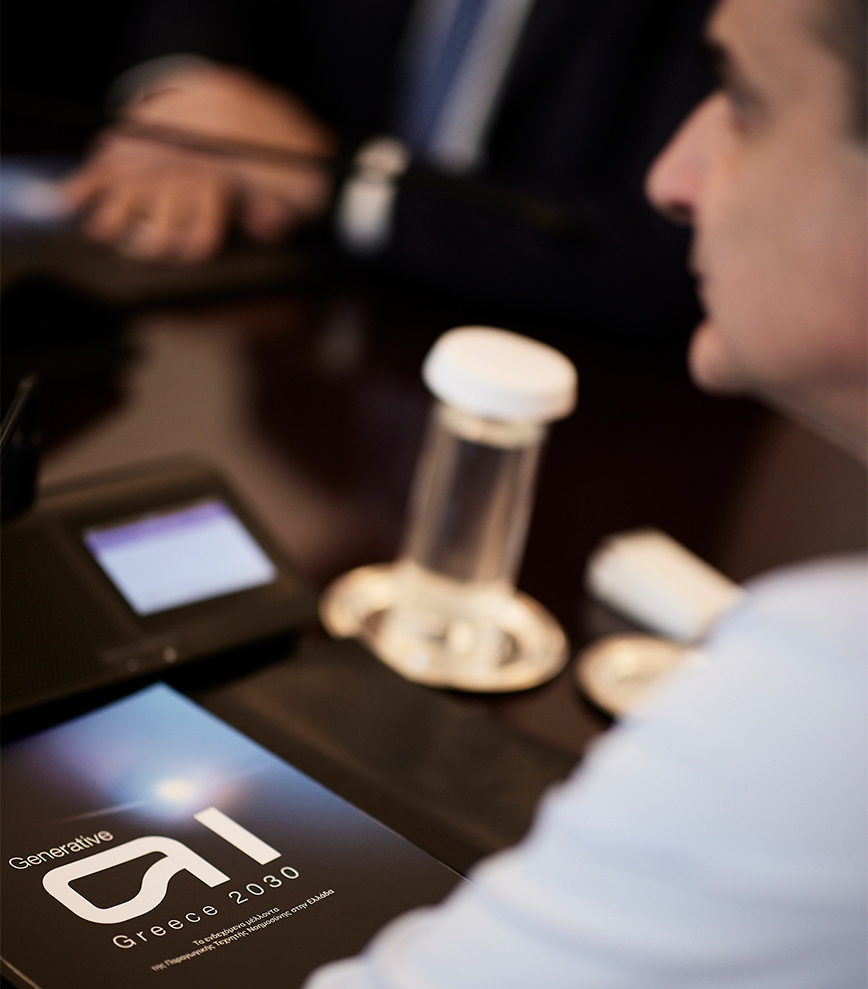 Σύσκεψη υπό τον πρωθυπουργό Κυριάκο Μητσοτάκη για την παρουσίαση της μελέτης «Generative AI Greece 2030: Τα ενδεχόμενα μέλλοντα της Παραγωγικής Τεχνητής Νοημοσύνης στην Ελλάδα», πραγματοποιήθηκε το πρωί στο Μέγαρο Μαξίμου.