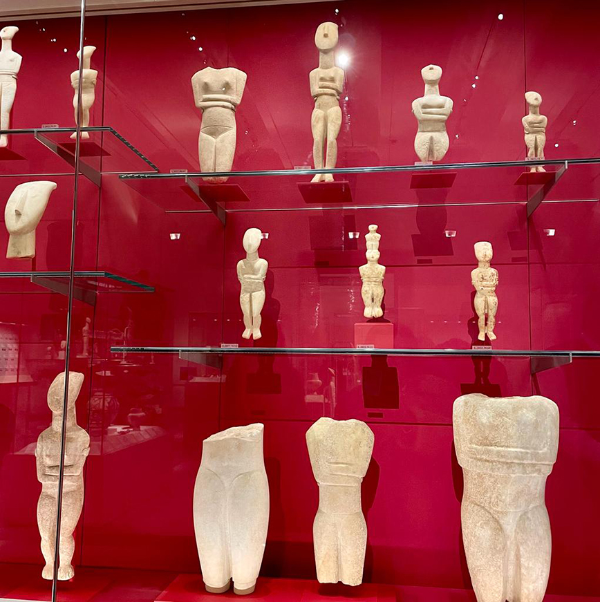 Τα ειδώλια κυμαίνονται από μικρογραφικά έως το μεγάλο άγαλμα γυναίκας, ένα από τα ελάχιστα έργα κυκλαδικής μνημειακής γλυπτικής που συγκρίνεται με τα αντίστοιχα που βρίσκονται στο Εθνικό Αρχαιολογικό Μουσείο Αθηνών.