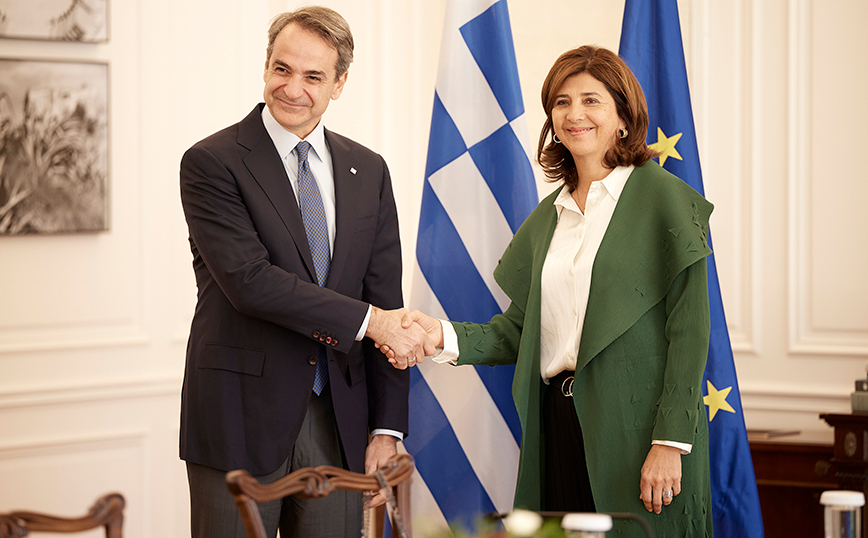 Ο πρωθυπουργός Κυριάκος Μητσοτάκης είχε σήμερα συνάντηση στο Μέγαρο Μαξίμου με την προσωπική απεσταλμένη του γενικού γραμματέα του Οργανισμού Ηνωμένων Εθνών για την Κύπρο, Μαρία Άντζελα Χολγκίν Κουέγιαρ.
