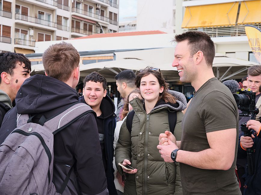 Με μια βόλτα στα καφέ του κέντρου και της παραλίας έκλεισε σήμερα η επίσκεψη του προέδρου του ΣΥΡΙΖΑ Στέφανου Κασσελάκη στον Βόλο. Ο κόσμος ζητούσε να φωτογραφηθεί μαζί του και οι συζητήσεις περιστράφηκαν γύρω από τις καταστροφές στη Θεσσαλία και την παιδεία. Ο πρόεδρος του ΣΥΡΙΖΑ συνοδευόταν από τον σύζυγό του Τάιλερ Μακμπέθ.