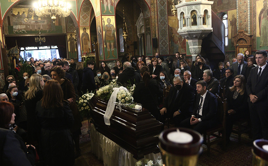 Μέσα σε κλίμα οδύνης, συγγενείς, φίλοι, συνάδελφοι και απλός κόσμος αποχαιρετά τον πρώην υπουργό του ΠΑΣΟΚ στον Ιερό Ναό Μεταμορφώσεως του Σωτήρος στο Κεφαλάρι Κηφισιάς.
