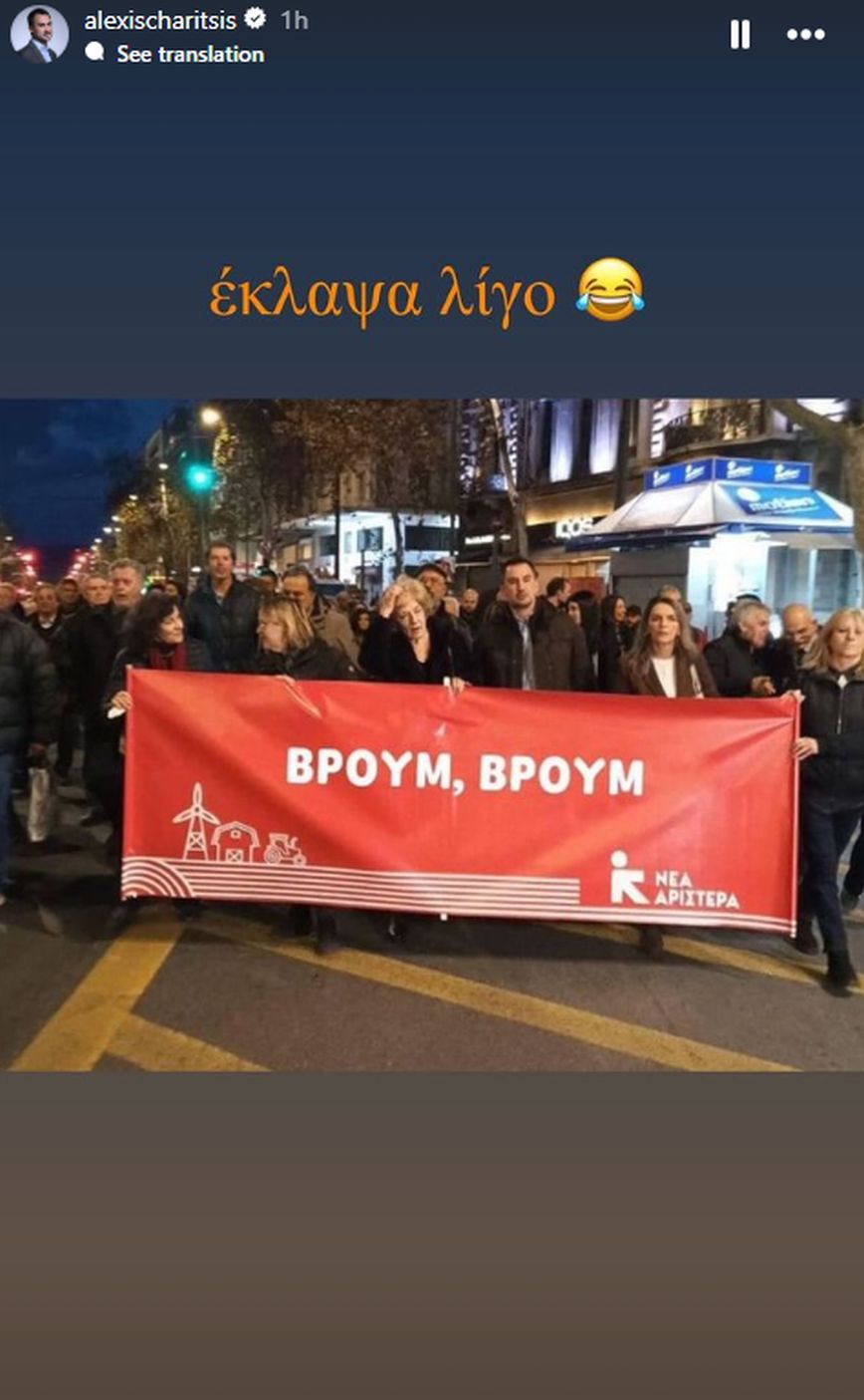 Ο ίδιος ο επικεφαλής της Κοινοβουλευτικής Ομάδας της Νέας Αριστεράς γέλασε με τα εκατοντάδες χιουμοριστικά σχόλια, που διάβασε στο Διαδίκτυο για το πανό. Μάλιστα, μία από τις φωτογραφίες, όπου έχει αντικατασταθεί το σύνθημα «Οι αγρότες έχουν δίκιο» με το… «ΒΡΟΥΜ, ΒΡΟΥΜ», τον ήχο, δηλαδή, που κάνουν τα τρακτέρ, την ανάρτησε στον προσωπικό του λογαριασμό στο Instagram, γράφοντας από πάνω: «Έκλαψα λίγο» και δίπλα μια φατσούλα ενός προσώπου (emoji), που κλαίει από τα γέλια.