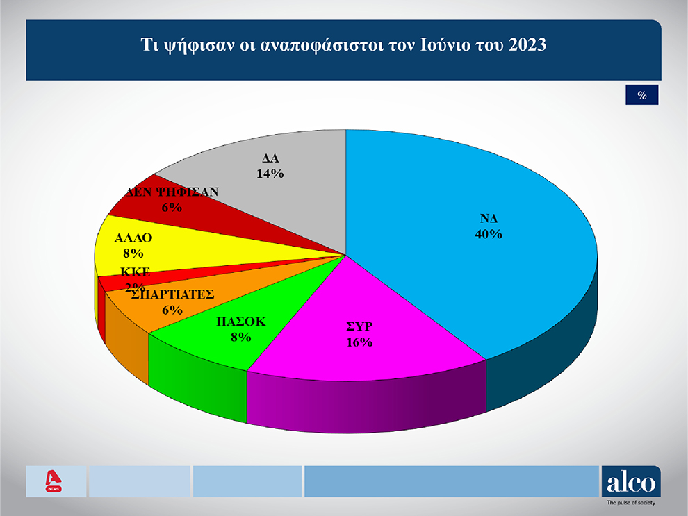 Το δεύτερο μέρος της δημοσκόπησής της για λογαριασμό του Alpha, παρουσίασε η Alco.