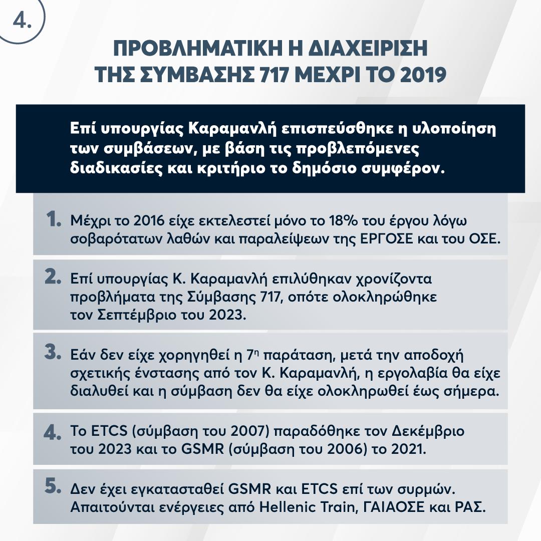 5. Η υλοποίηση των συμβάσεων για τα αυτοματοποιημένα συστήματα επισπεύστηκε σημαντικά επί Υπουργίας Καραμανλή, ενώ ειδικά το έργο της 717 θα είχε καθυστερήσει κατά πολύ ακόμα, αν δεν είχε δοθεί παράταση, αλλά είχε διαλυθεί και επαναπροκηρυχθεί.