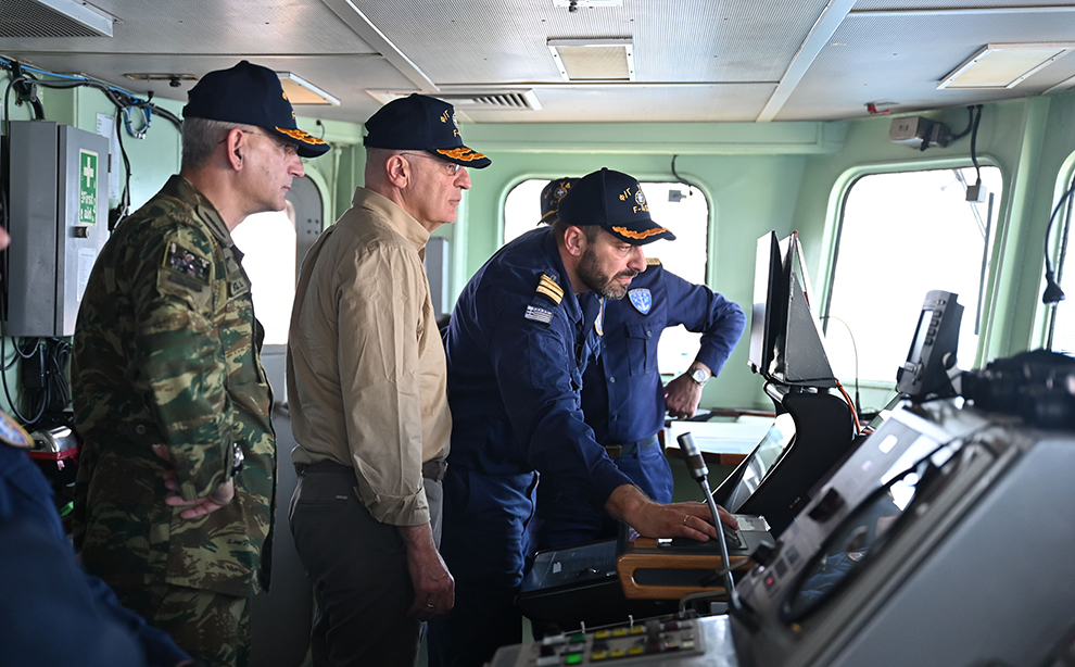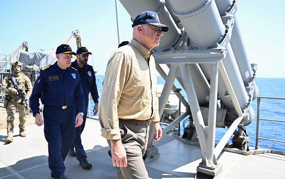 Ο υπουργός Άμυνας έκανε σχετική ανάρτηση στην πλατφόρμα Χ για την επίσκεψη στο πολεμικό πλοίο που συμμετέχει στην επιχείρηση «Ασπίδες».