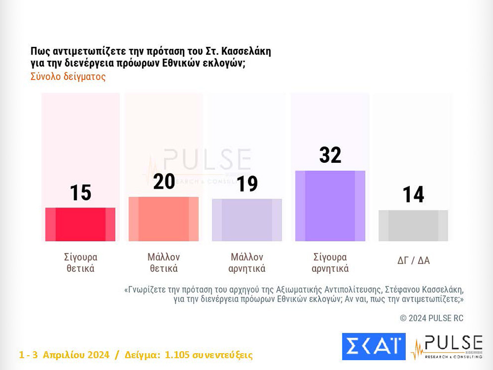 Αρνητική στο ενδεχόμενο πρόωρων βουλευτικών εκλογών, που έφερε ως αίτημα ο Στέφανος Κασσελάκης, εμφανίζεται η πλειοψηφία των πολιτών.