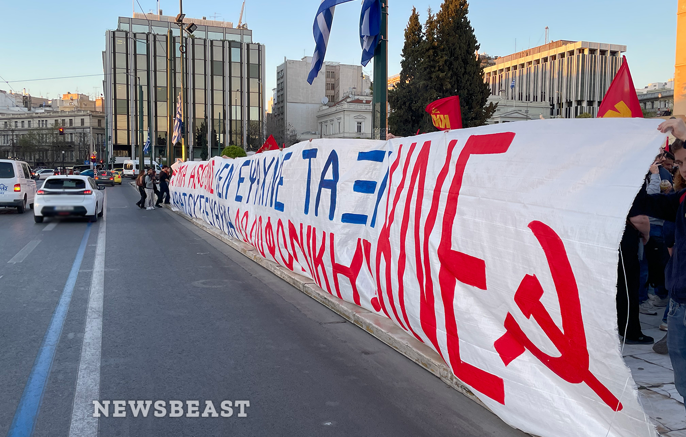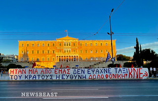 Εκεί τα μέλη της ΚΝΕ έχουν σηκώσει γιγαντοπανό, το οποίο αναγράφει: «Ήταν μια από μας, δεν έψαχνε ταξί, του κράτους η ευθύνη δολοφονική».