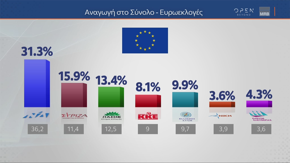 Τα αντίστοιχα ποσοστά με αναγωγή των αναποφάσιστων, διαμορφώνονται ως εξής: