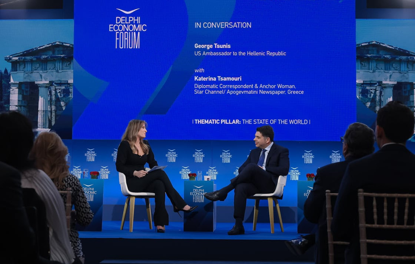 «Ο κόσμος οφείλει ευγνωμοσύνη στην Ελλάδα για τη διακυβέρνηση και τη δημοκρατία», τόνισε ο Πρέσβης των ΗΠΑ στην Ελλάδα, Τζορτζ Τσούνης, μιλώντας στο 9ο Οικονομικό Φόρουμ των Δελφών αναφερόμενος στις δυτικές αξίες της δημοκρατίας, της ισότητας και του πολιτισμού, ενώ αποκάλυψε και τη δική του ιστορία και της οικογένειας του από ένα φτωχό χωριό στην Ελλάδα στις ΗΠΑ.