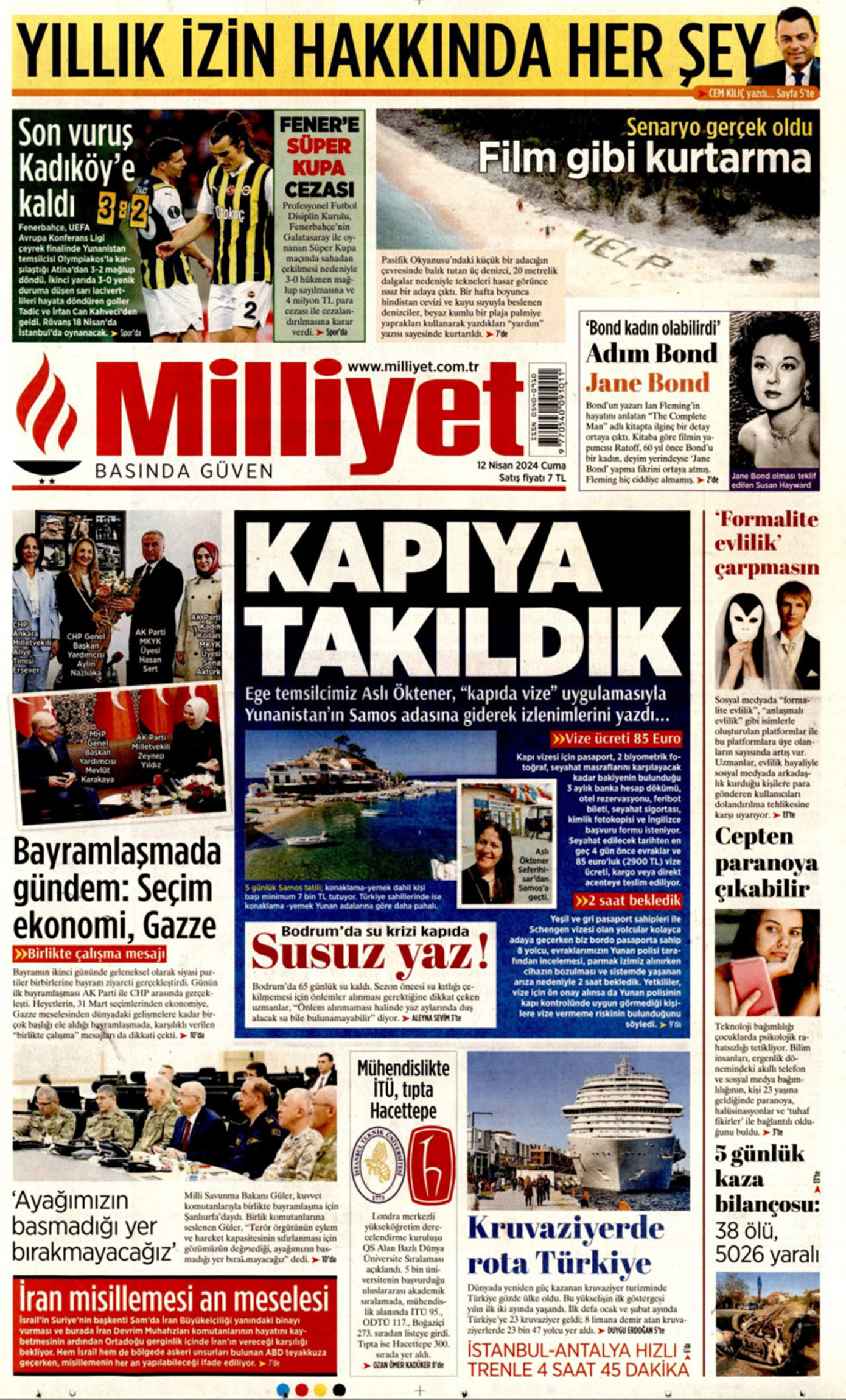Την ίδια στιγμή η «Milliyet» επισημαίνει επίσης τη γρήγορη βίζα που μπορούν να βγάλουν οι Τούρκοι για τα 10 ελληνικά νησιά. Συγκεκριμένα αναφέρει ότι «κολλήσαμε στην πύλη για τη γρήγορη βίζα», επισημαίνοντας ότι απαιτούνται πολλά χαρτιά για την έκδοση της βίζας για τα ελληνικά νησιά, θα πρέπει να κατατεθούν 4 ημέρες πριν από το ταξίδι σε ένα γραφείο, ενώ η αναμονή στο νησί μέχρι να μπουν παίρνει τουλάχιστον 2 ώρες.