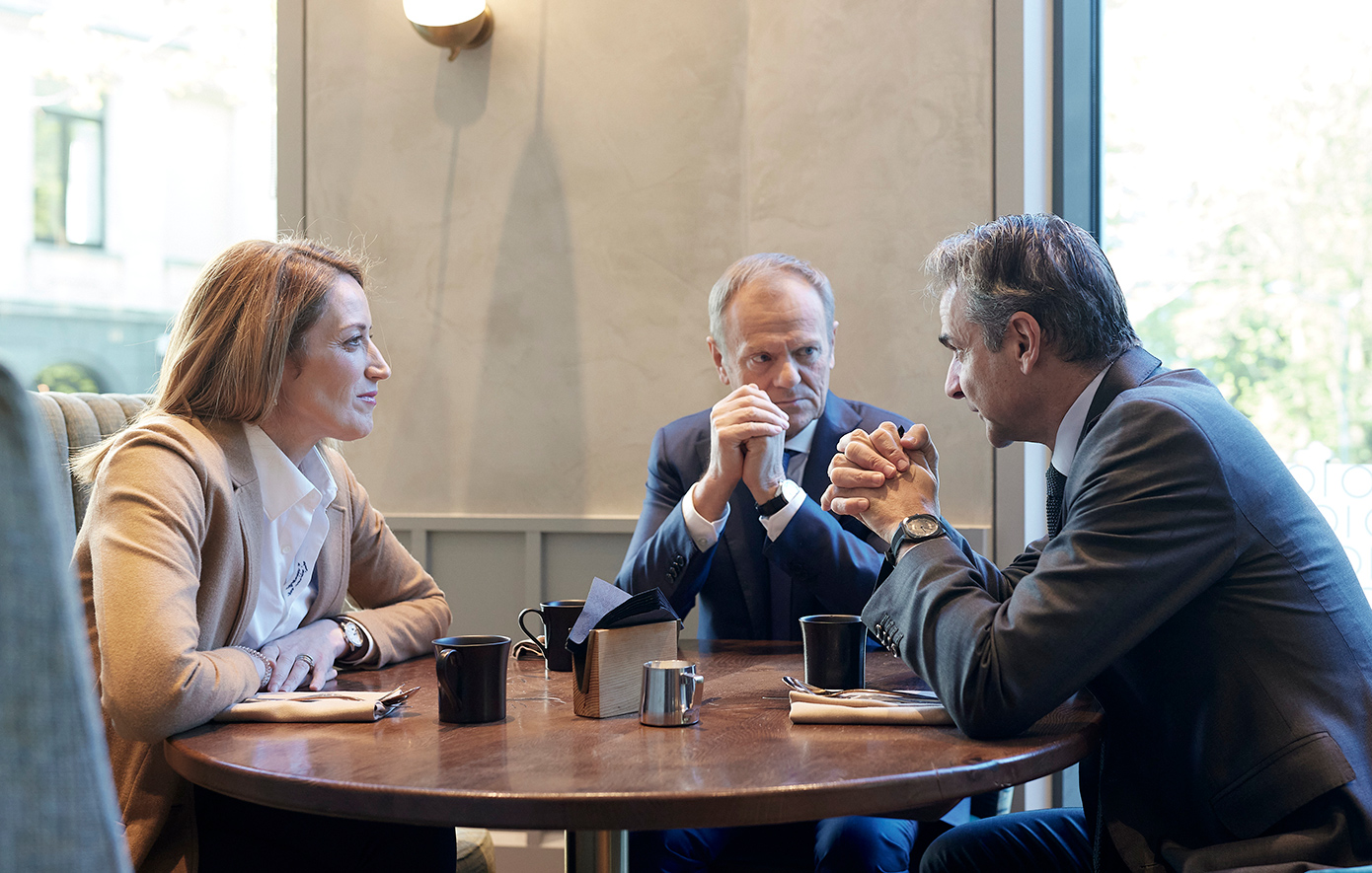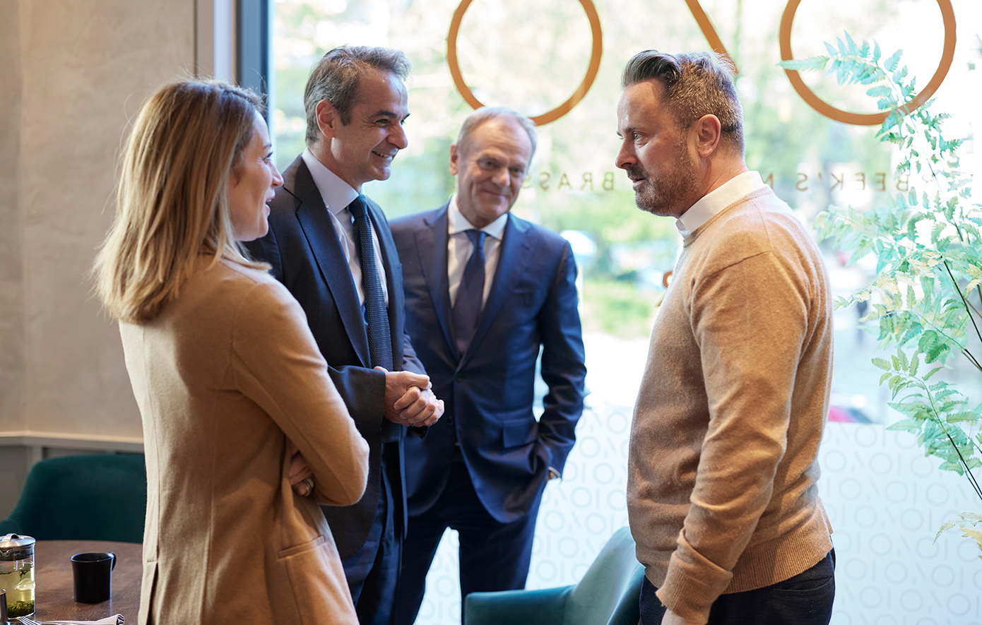 Μίνι σύσκεψη κορυφής ενόψει των ευρωεκλογών έγινε στο περιθώριο της Συνόδου Κορυφής με τον πρωθυπουργό, Κυριάκο Μητσοτάκη, να συναντάται το πρωί στις Βρυξέλλες με τον πρωθυπουργό της Πολωνίας, Ντόναλντ Τουσκ, και την πρόεδρο του Ευρωπαϊκού Κοινοβουλίου, Ρομπέρτα Μέτσολα.