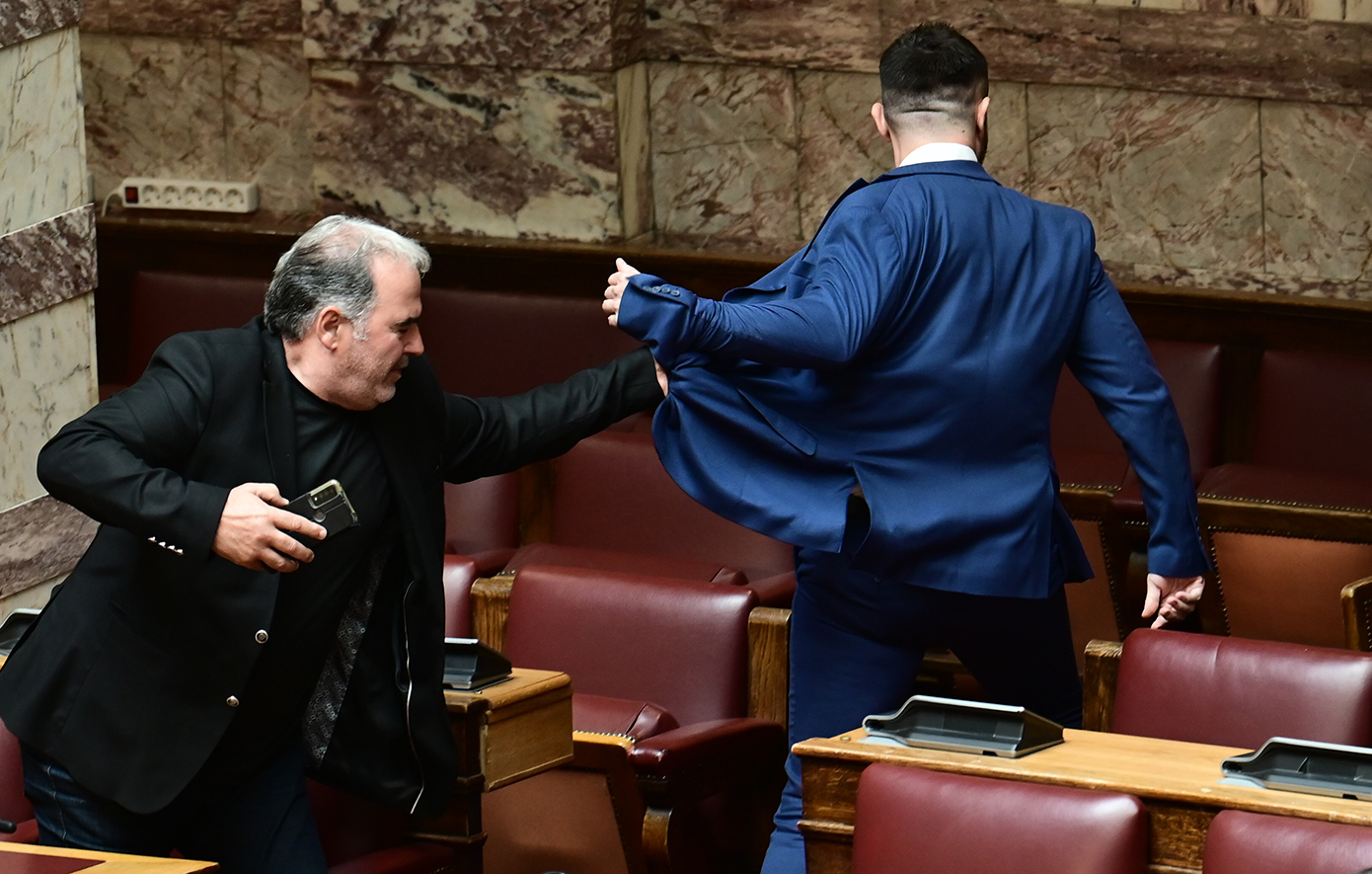 Εικόνες που δεν τιμούν το Κοινοβούλιο καταγράφηκαν στην αίθουσα της Ολομέλειας, όταν ο ανεξάρτητος βουλευτής, Κωνσταντίνος Φλώρος (είχε εκλεγεί με τους Σπαρτιάτες), γρονθοκόπησε τον βουλευτή της Ελληνικής Λύσης, Βασίλη Γραμμένο, και αμέσως μετά επιχείρησε να φύγει, αλλά τον ακινητοποίησαν άνδρες της ασφάλειας του Μεγάρου.