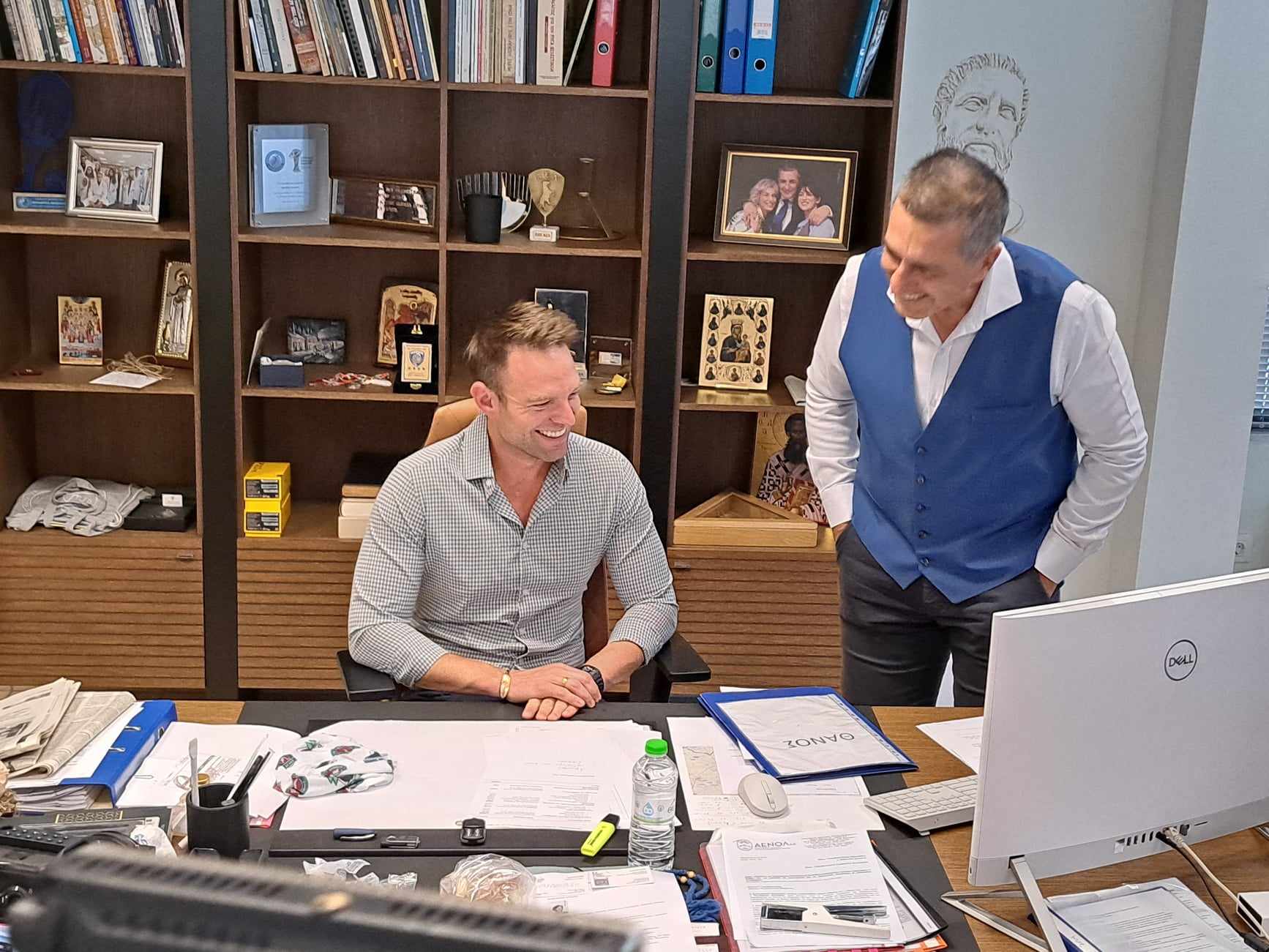 Σήμερα βρέθηκε στο κτήριο της Περιφέρειας Θεσσαλίας, όπου και είχε συνάντηση με τον περιφερειάρχη κ. Δημήτρη Κουρέτα, o οποίος τον υποδέχτηκε με «θερμή» αγκαλιά παρουσία και του βουλευτή Λάρισας κ. Βασίλη Κόκκαλη.