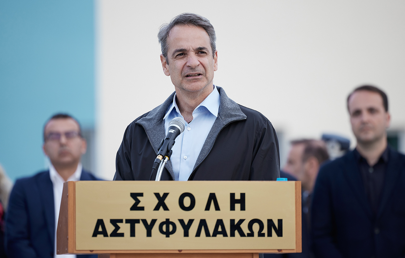 Στη συνέχεια, ο πρωθυπουργός επισκέφθηκε τη Σχολή Αστυφυλάκων Κομοτηνής, όπου άρχισε πρόσφατα η εκπαίδευση του πρώτου σώματος Δικαστικής Αστυνομίας.