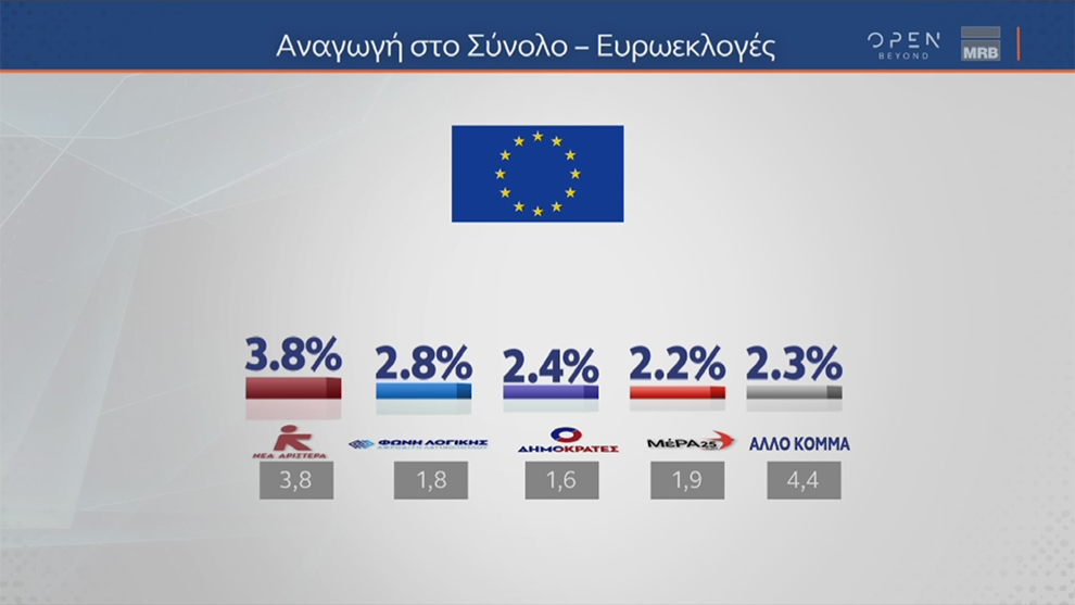 Επτά κόμματα δείχνουν να εκλέγουν ευρωβουλευτή, σύμφωνα με δημοσκόπηση της MRB, που πραγματοποιήθηκε για λογαριασμό του τηλεοπτικού σταθμού «OPEN».