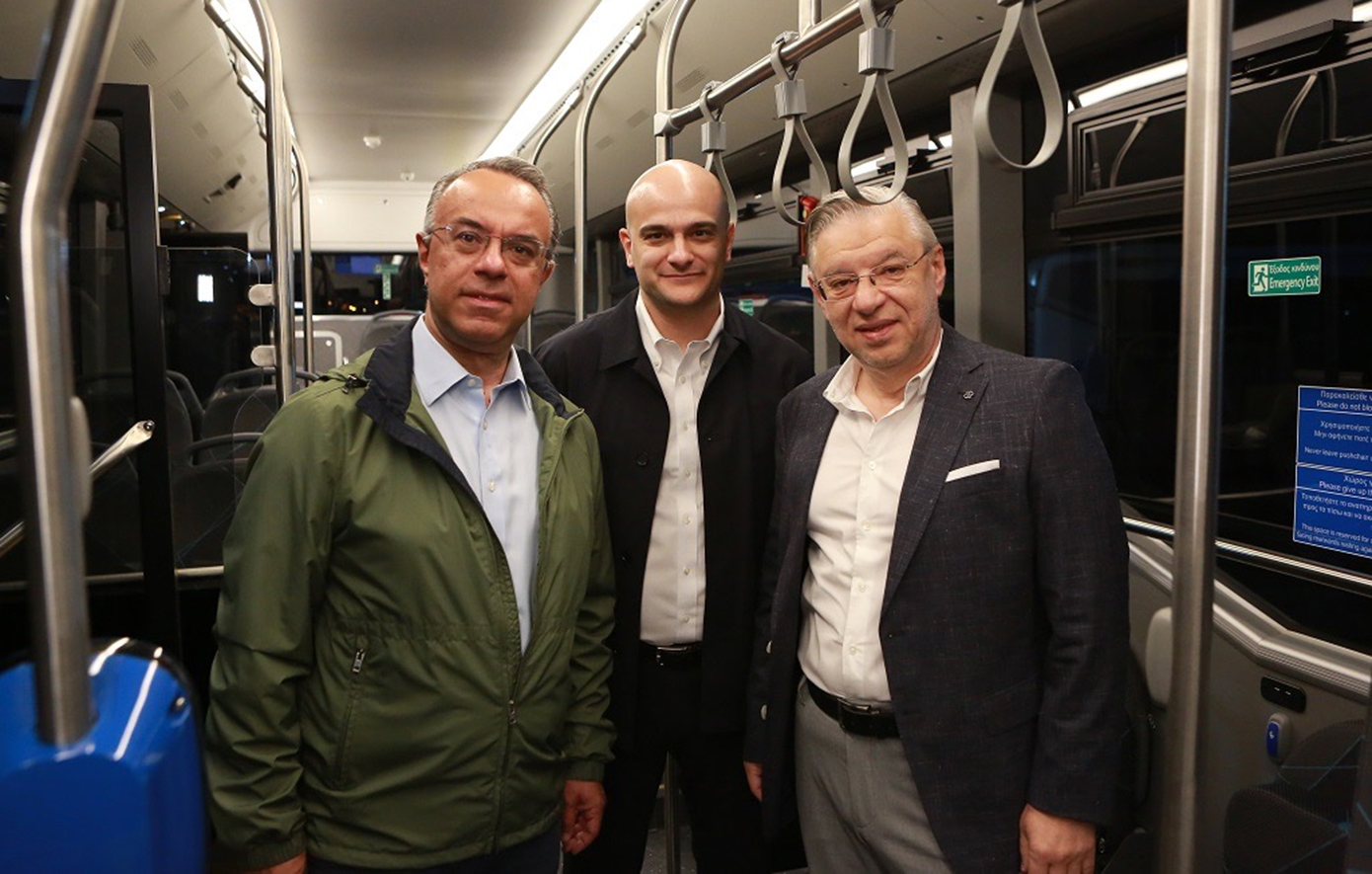 Στο πρώτο δρομολόγιο των νέων ηλεκτρικών λεωφορείων που δρομολογούνται από την ΟΣΥ ΑΕ στην Αθήνα επιβιβάστηκε ο υπουργός Υποδομών και Μεταφορών, Χρήστος Σταϊκούρας, συνοδευόμενος από τον γγ Μεταφορών, Γιάννη Ξιφαρά και τον διευθύνοντα σύμβουλο της ΟΣΥ ΑΕ, Στέφανο Αγιάσογλου.