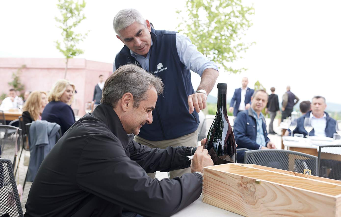 Επισκέφθηκε τους χώρους και ενημερώθηκε για τη λειτουργία του, ενώ συζήτησε και με τους εργαζόμενους. Στη συνέχεια, οι Γιάννης και Στέλιος Μπουτάρης παρέθεσαν γεύμα στον Κυριάκο Μητσοτάκη και σε ολόκληρη την αποστολή που τον συνόδευε κοντά στα αμπέλια.