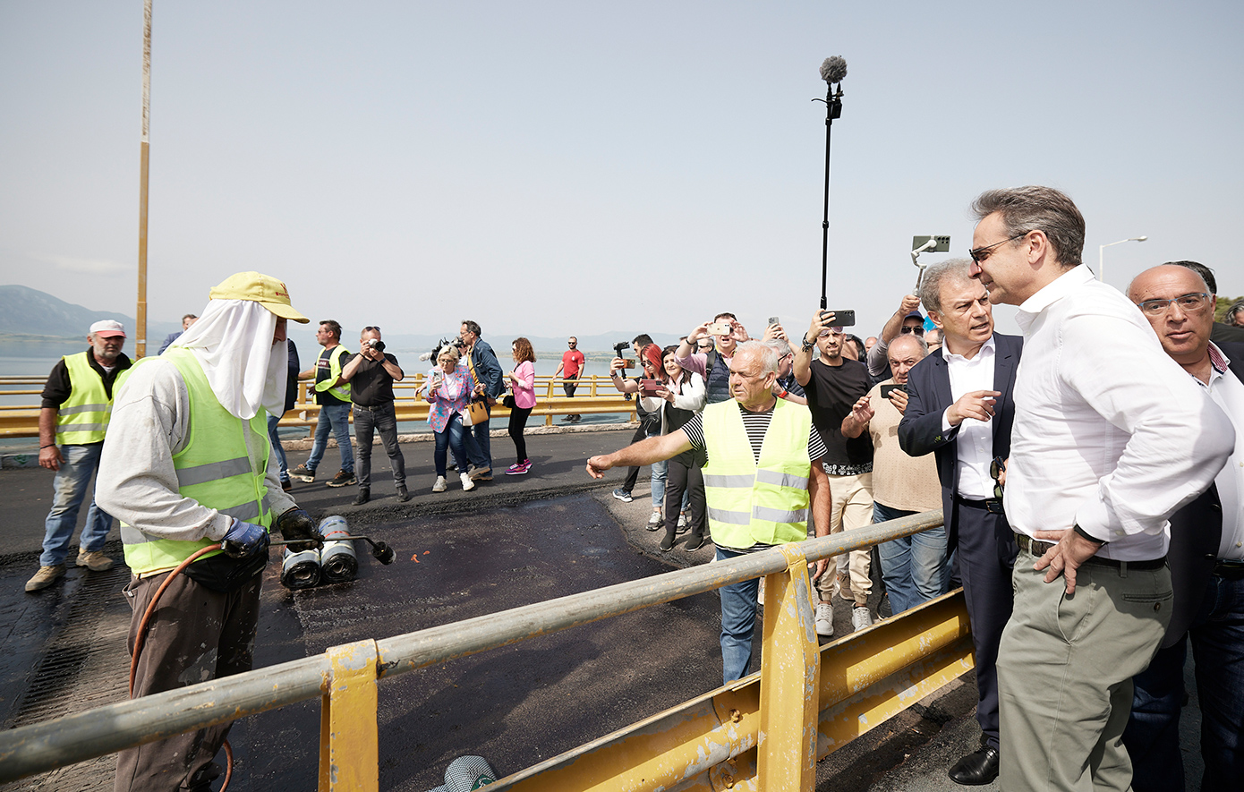 Νωρίτερα, ο πρωθυπουργός έκανε στάση στην Υψηλή Γέφυρα Σερβίων, όπου ενημερώθηκε για την πορεία των έργων αποκατάστασης και αναβάθμισής της.