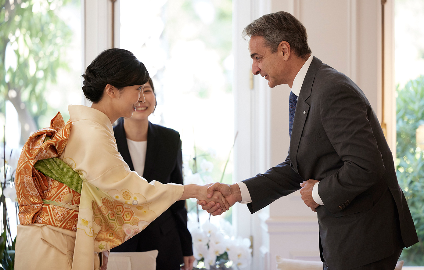 Ο Κυριάκος Μητσοτάκης και η σύζυγός του Μαρέβα Γκραμπόφσκι – Μητσοτάκη υποδέχτηκαν σήμερα στο Μέγαρο Μαξίμου την πριγκίπισσα Kako του Akishino, της Ιαπωνίας.