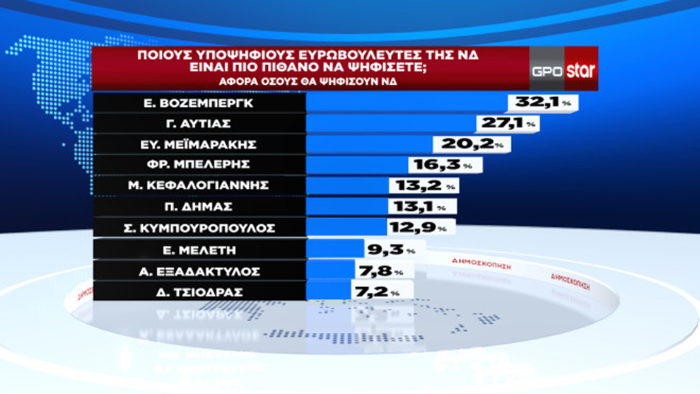 Μεταξύ των υποψηφίων της Νέας Δημοκρατίας, προηγούνται οι:
