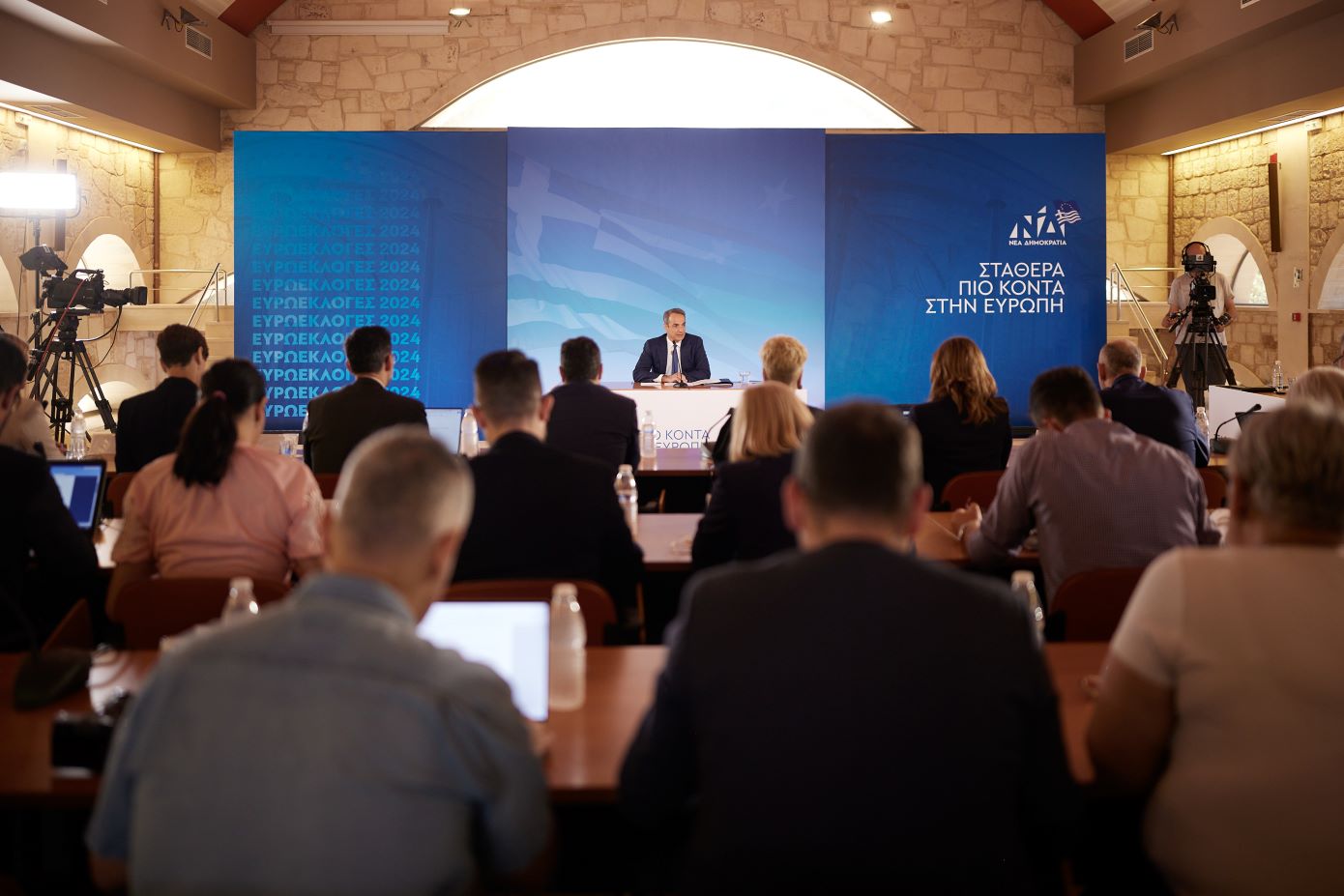 Διακαναλική συνέντευξη Τύπου ενόψει των ευρωεκλογών της 9ης Ιουνίου, παραχώρησε το πρωί της Κυριακής 2/6 από το Μεσογειακό Αγρονομικό Ινστιτούτο Χανίων ο Κυριάκος Μητσοτάκης. Ο πρωθυπουργός κάλεσε τον Στέφανο Κασσελάκη να καταθέσει το πόθεν έσχες του ενώ αναφέρθηκε στους στόχους της Νέας Δημοκρατίας λέγοντας πως θα αυξηθεί στα 2 δισ. ευρώ το πρόγραμμα «Σπίτι μου».
